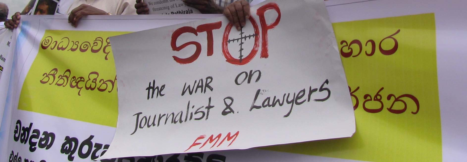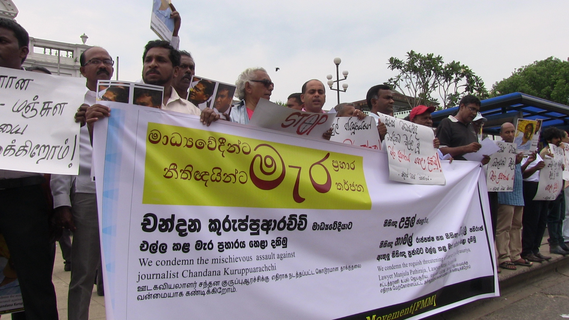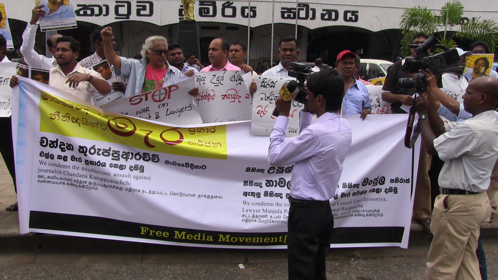 සිරස මාධ්යවේදී චන්දන කුරුප්පුආරච්චි ට හාළිඇලදී එල්ල කල මැර ප්රහාරය සහ පසුගිය දිනවල ශ්රී ලංකා නීතිඥ සංගමයේ සභාපති, නීතිඥ උපුල් ජයසූරියට සහ නීතිඥ මංජුල පතිරාජ, නීතිඥ නාමල් රාජපක්ෂ ට එල්ල කළ මැර තර්ජනවලට විරෝධය දක්වමින් නිදහස් මාධ්ය ව්යාපාරය විසින් අද(02) කොළඹ දී විරෝධතාවයක් සංවිධානය කර තිබිණි.
