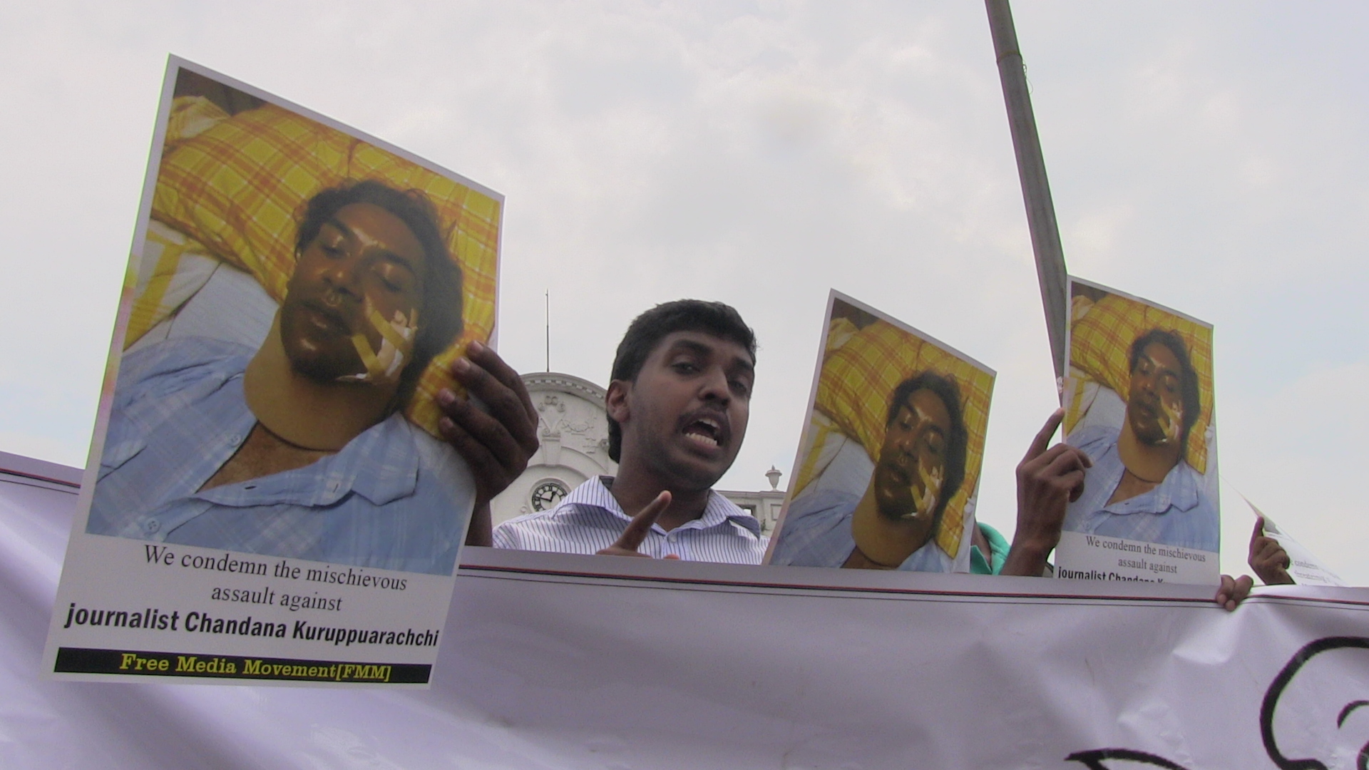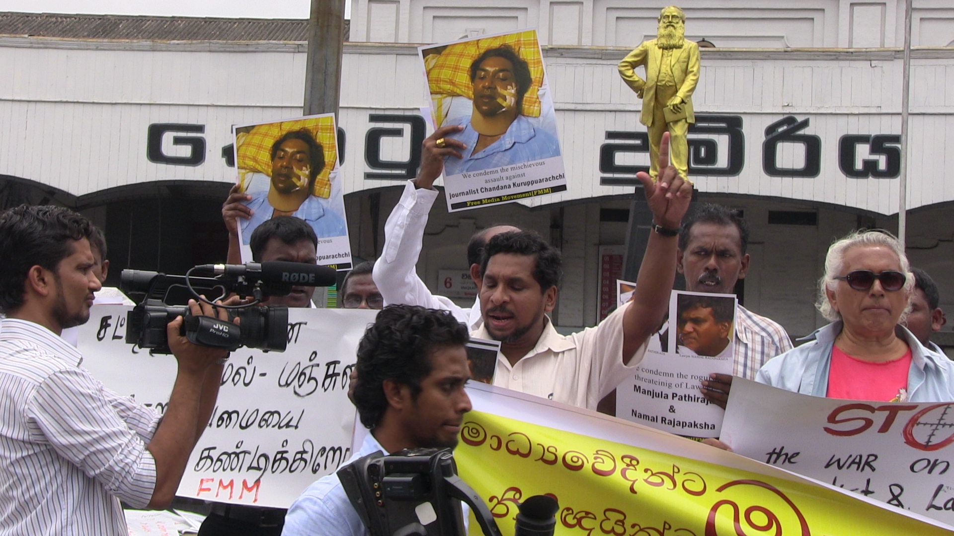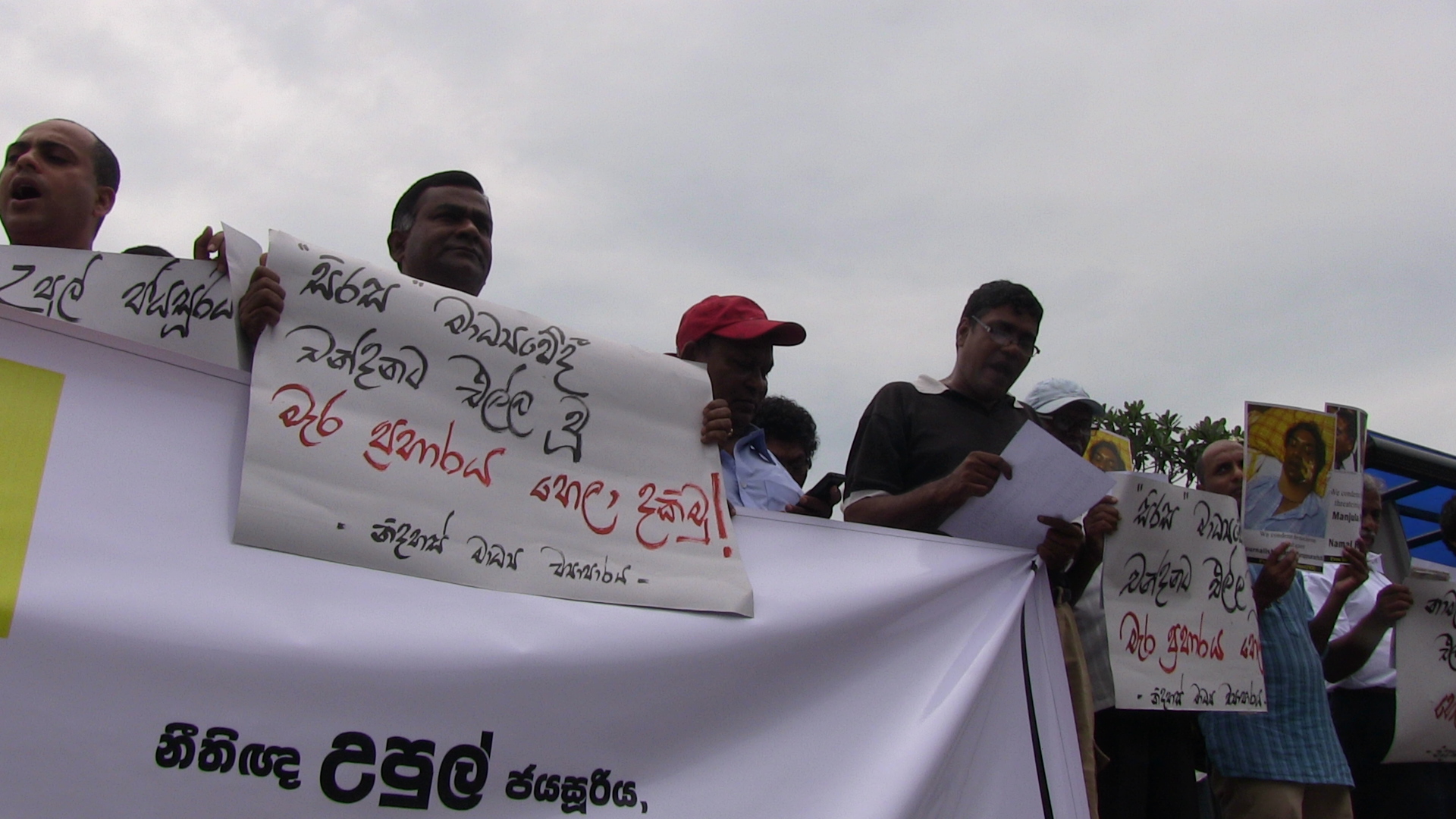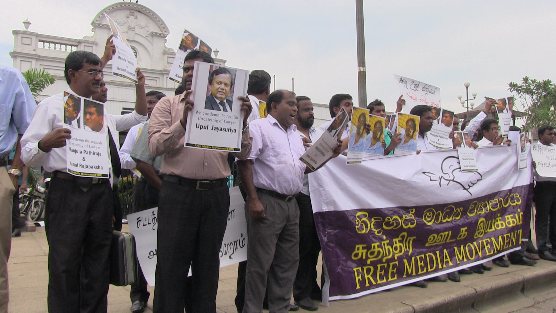 සිරස මාධ්යවේදී චන්දන කුරුප්පුආරච්චි ට හාළිඇලදී එල්ල කල මැර ප්රහාරය සහ පසුගිය දිනවල ශ්රී ලංකා නීතිඥ සංගමයේ සභාපති, නීතිඥ උපුල් ජයසූරියට සහ නීතිඥ මංජුල පතිරාජ, නීතිඥ නාමල් රාජපක්ෂ ට එල්ල කළ මැර තර්ජනවලට විරෝධය දක්වමින් නිදහස් මාධ්ය ව්යාපාරය විසින් අද(02) කොළඹ දී විරෝධතාවයක් සංවිධානය කර තිබිණි.