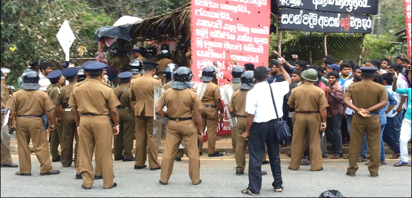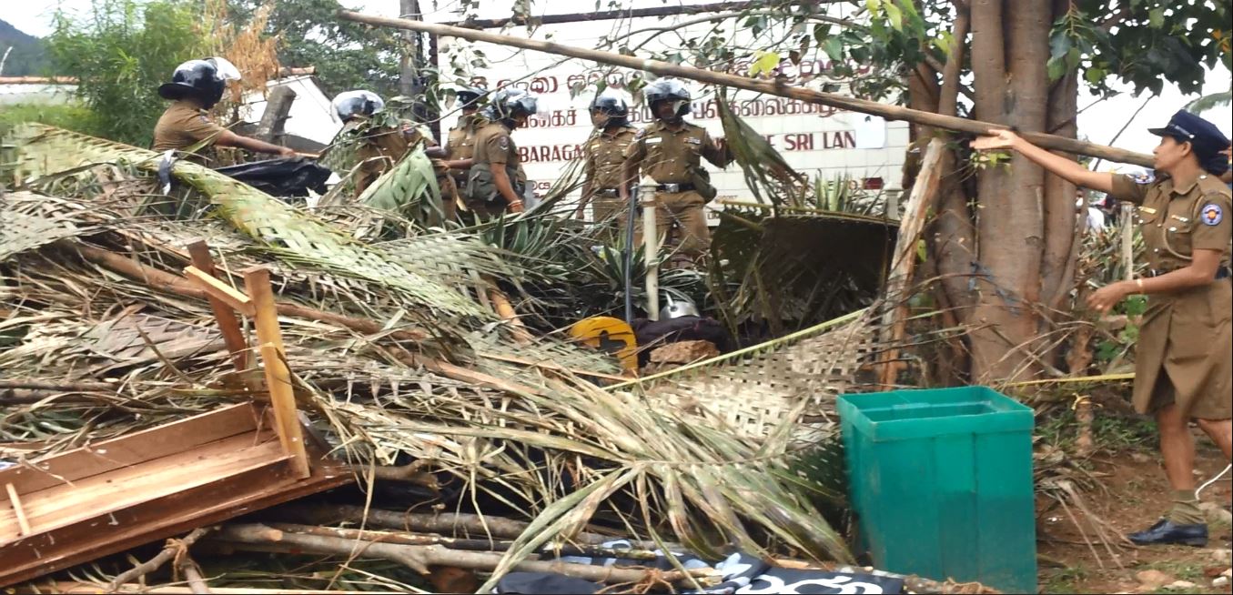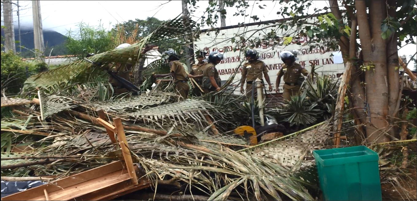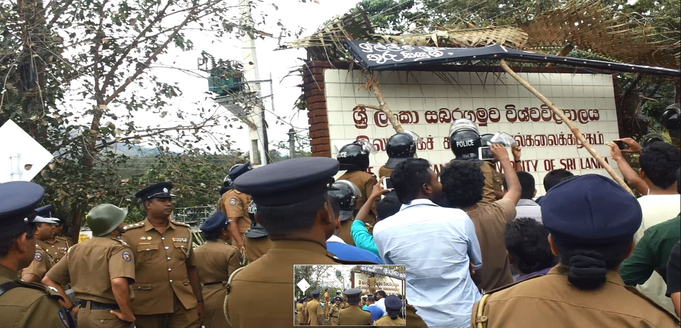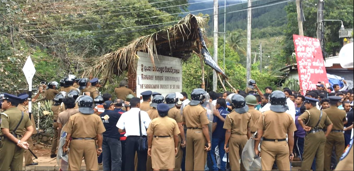 සබරගමුව විශ්වවිද්යාලයේ තහනම් කළ මහා ශිෂ්ය සංගමය හා පීඨ ශිෂ්ය සංගම් 5 වහා ස්ථාපිත කරන ලෙසත්, අත්තනෝමතික පන්ති තහනම් 8 ඉවත් කරන ලෙසත්, විශ්වවිද්යාලය තුල ප්රජාතන්ත්රවාදය ස්ථාපිත කරන ලෙසත් ඇතුළු ඉල්ලීම් කිහිපයක් මුල් කරගනිමින් සිසුන් ආරම්භ කල අඛන්ඩ සත්යග්රහයට අදට(18) දින 47ක් ගතවෙද්දී රාජපක්ෂලාගේ පොලිසිය විසින් ඒක පාක්ෂිකව ලබා ගත් අධිකරණ නියෝගයක් අනුව සත්යග්රහයේ නිරත සිසුන් බලහත්කාරයෙන් අට්ටාලයෙන් ඉවත් කර, අට්ටාලය කඩා දැමුවේය. මේ සඳහා කැරළි මර්දන එ්කකයෙන් හා පොලිස් නිළධාරීන් 300කට අධික පිරිසක් පැමිණි බව පවසන ශිෂ්ය නියෝජිතයන්, අට්ටාලය කඩා ඉවත් කළ ද සිසුන් එම ස්ථානයේම රැඳී සිටි අතර පොලිසිය සිසුන්ට පහර දී සිසුන් සමඟ ගැටුමක් ඇති කර ගැනීමට උත්සාහ කරමින් සිටන බවත් ඔවුන් පවසයි.