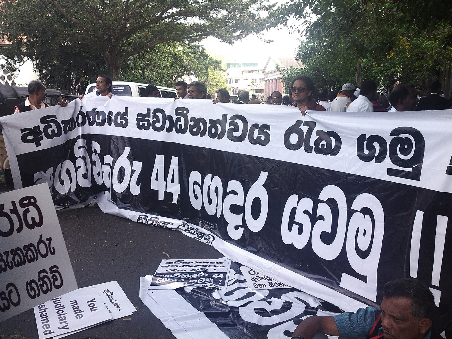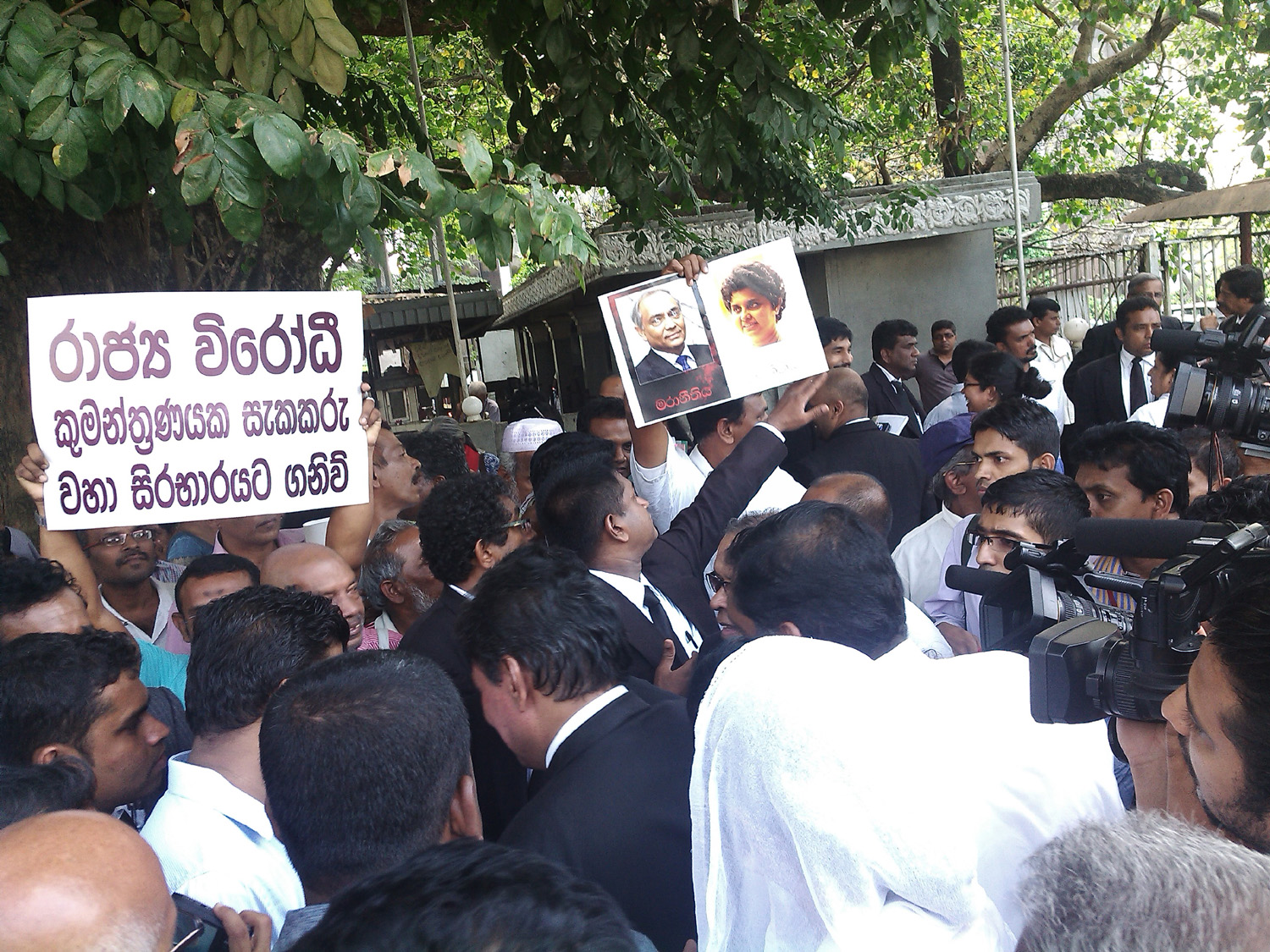 රාජපක්ෂ ආණ්ඩුව විසින් නීතියානුකූල නොවන ලෙස පත්කරන ලද මොහාන් පීරිස් වහාම සිය අගවිනිසුරු ධූරයෙන් ඉවත්විය යුතු බවට, නීතිඥ එකමුතුව සහ සිවිල් සංවිධාන විසින් අද(28)උදෑසන සිට මේ දක්වා පවත්වාගෙන යමින් සිටින විරෝධතාවය අතර තුර මොහාන් පීරිස් එම තනතුරෙන් ඉවත් කිරීමටත්, හිටපු අගවිනිසුරුවරිය වන ආචාර්ය ශිරාණි බණ්ඩාරණායක නැවත එම අගවිනිසුරු දූරයට පත්කිරීමට රජය විසින් තිරණය කර ඇතැයි නීතිඥ එකමුතුව පවසයි.
