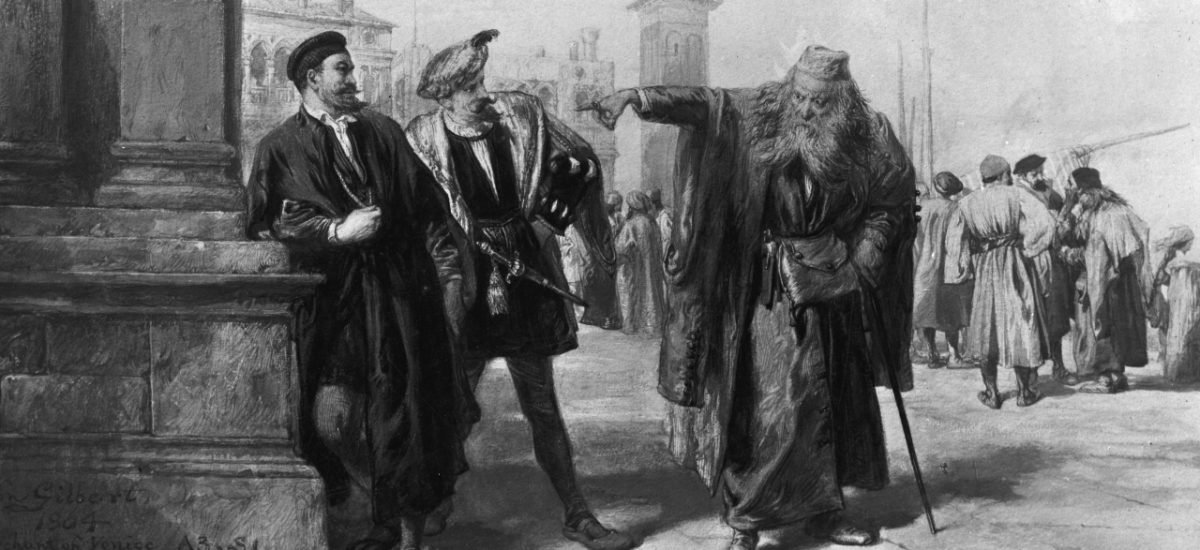 ෂයිලොක්ගෙන් ණයක් ගත් බස්සානියෝ වෙනුවෙන් ඇප වූයේ ඇන්ටෝනියෝය. ඇපය වූයේ ඇන්ටෝනියෝගේ සිරුරෙන් හදවතට ආසන්නයේ මස් රාත්තලකි. බස්සානියෝට ණය ගෙවීමට බැරිවිය. ෂයිලොක් මස් රාත්තල කපා ගන්නට ආවේය. හරියටම රත්තලක් කපා ගන්නට පමණක්ම වූ ගිවිසුම අතහැරීමට ෂයිලොක්ට සිදුවූයේ වැඩිපුර කැපුනොත් ගිවිසුම කැඩීමට වරදකරුවන නිසාය.