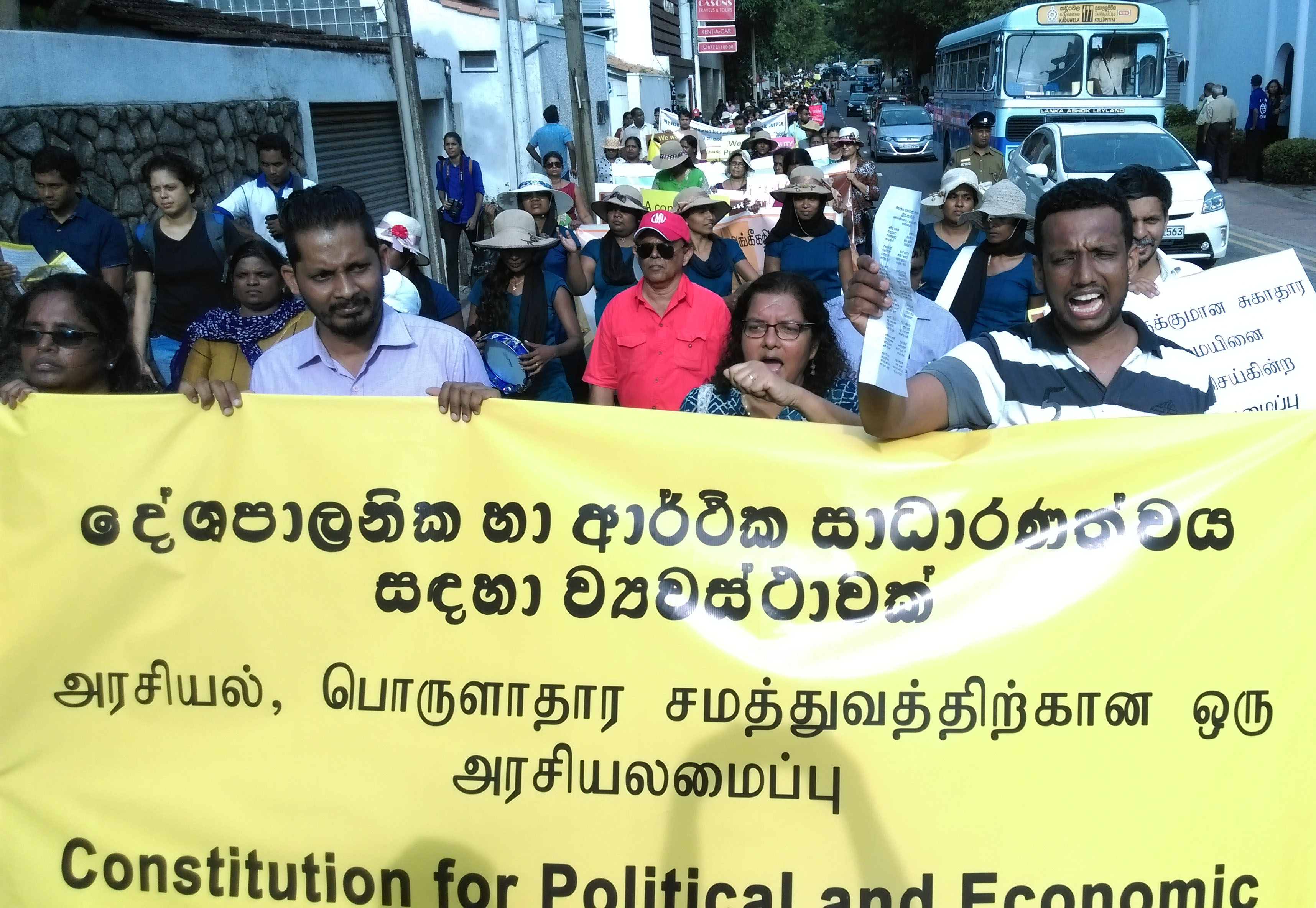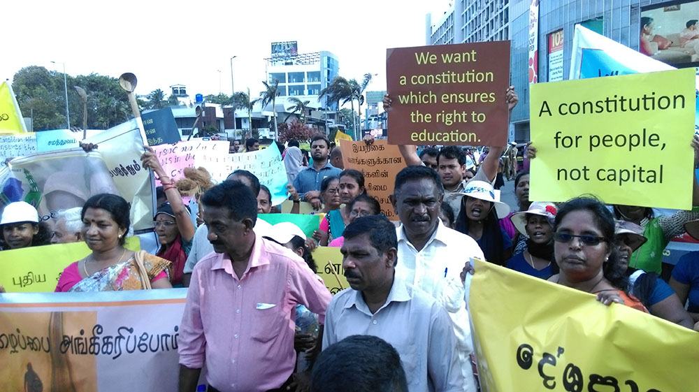 අද(20) රටතුල ක්රියාත්මක සිවිල් සංවිධාන ගණනාවක් සහ විවිධ ප්රදේශවලින් පැමිණී සිංහල, දෙමළ, මුස්ලිම් දහසකට ආසන්න පිරිසක් කොළඹ විහාරමහා දේවී එළිමහන් රංගපීඨයට රැස්වී අනතුරුව අරලියගහ මන්දීරය දක්වා පා ගමනින් ගොස් අගමැති කාර්යාලයට සංදේශයක්ද බාර දෙමින් නව ව්යවස්ථාවෙන් ඔවුන්ගේ ඉල්ලීම් තහවරු කරන ලෙස බලකර සිටියේ ය.