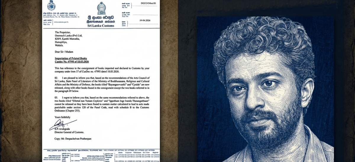 ශ්රී ලංකාවේ භාෂණයේ සහ ප්රකාශනයේ නිදහස යළිත් වරක් මාරාන්තික අගාධයකට ඇද දමා ඇති බව තහවුරු වන්නේ, ලේඛක දීපචෙල්වන්ගේ කෘති සම්බන්ධයෙන් රේගුව සහ කලා මණ්ඩලය ගනු ලැබූ මර්දනකාරී තීරණයත් සමඟය. රේගු අධ්යක්ෂ ජනරාල්වරයාගේ 2026.04.20 දිනැති ලිපියට අනුව, පොත් තොගයකින් කොටසක් නිදහස් කර තවත් කොටසක් රඳවා ගැනීමට පියවර ගෙන ඇත. මෙම ක්රියාවලිය හරහා කලාව පෝෂණය කිරීමට පත් කළ ආයතන, කලාව දඩයම් කරන “කලා පොලිසියක” භූමිකාවට පණ පොවමින් සිටීම සමස්ත සමාජයටම කරන ලද අභියෝගයකි.